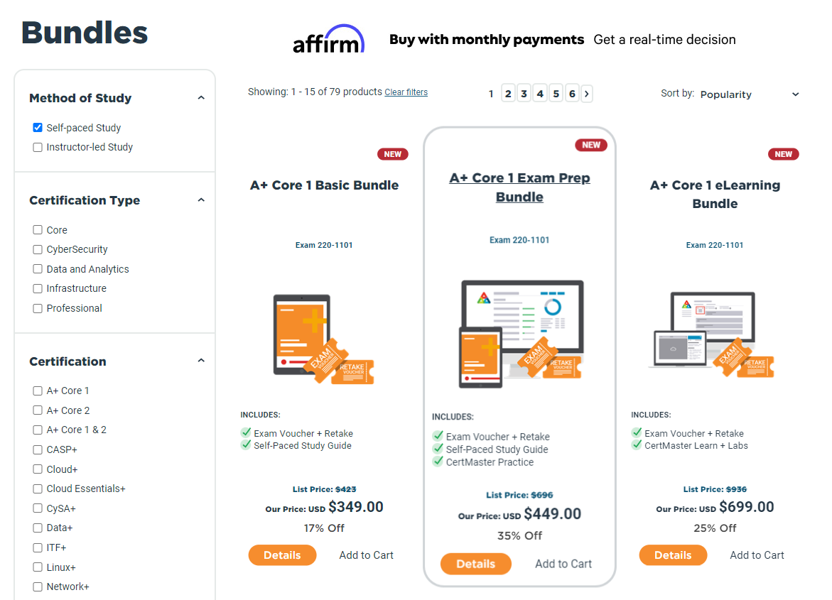 Certification Bundles (New): Similar bundle offerings across many certifications can be represented on the same page without confusion.