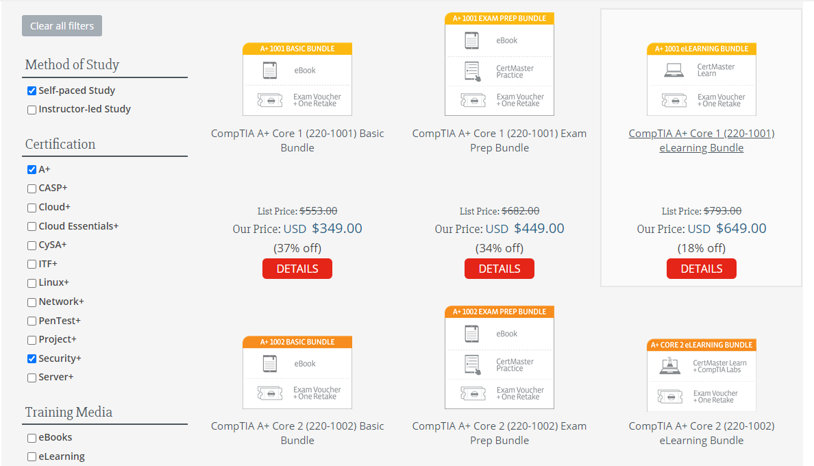 CompTIA is an IT certifications and training organization. Each year, dozens of new products and courses are released or updated. After a year and a half of work, the organization was ready to release a newly-updated webstore featuring all those products. However, there was no visual language for representing those products, or more importantly, complex bundles of products.