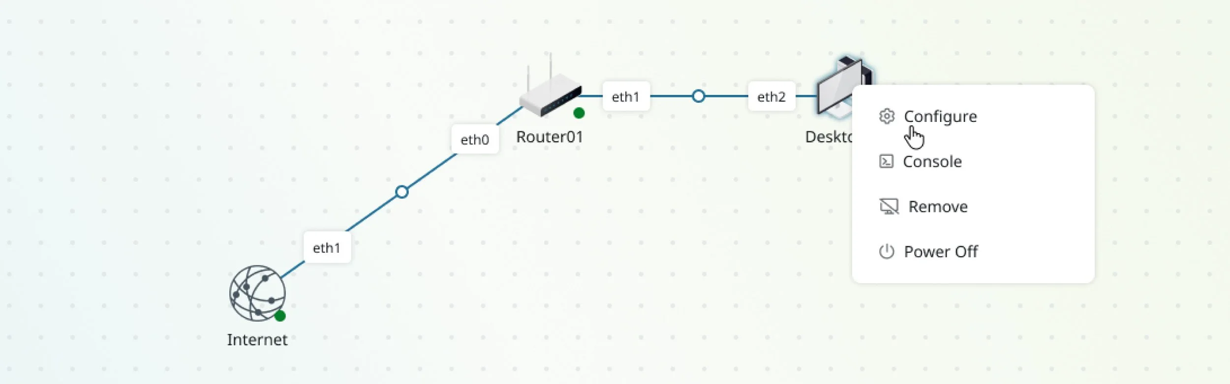 Once connected and turned on, nodes simulate real traffic and launch simulated interfaces, allowing users to dive into the settings to configure the network or system as they might in real life.