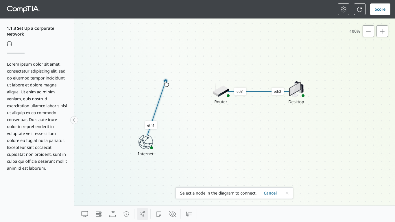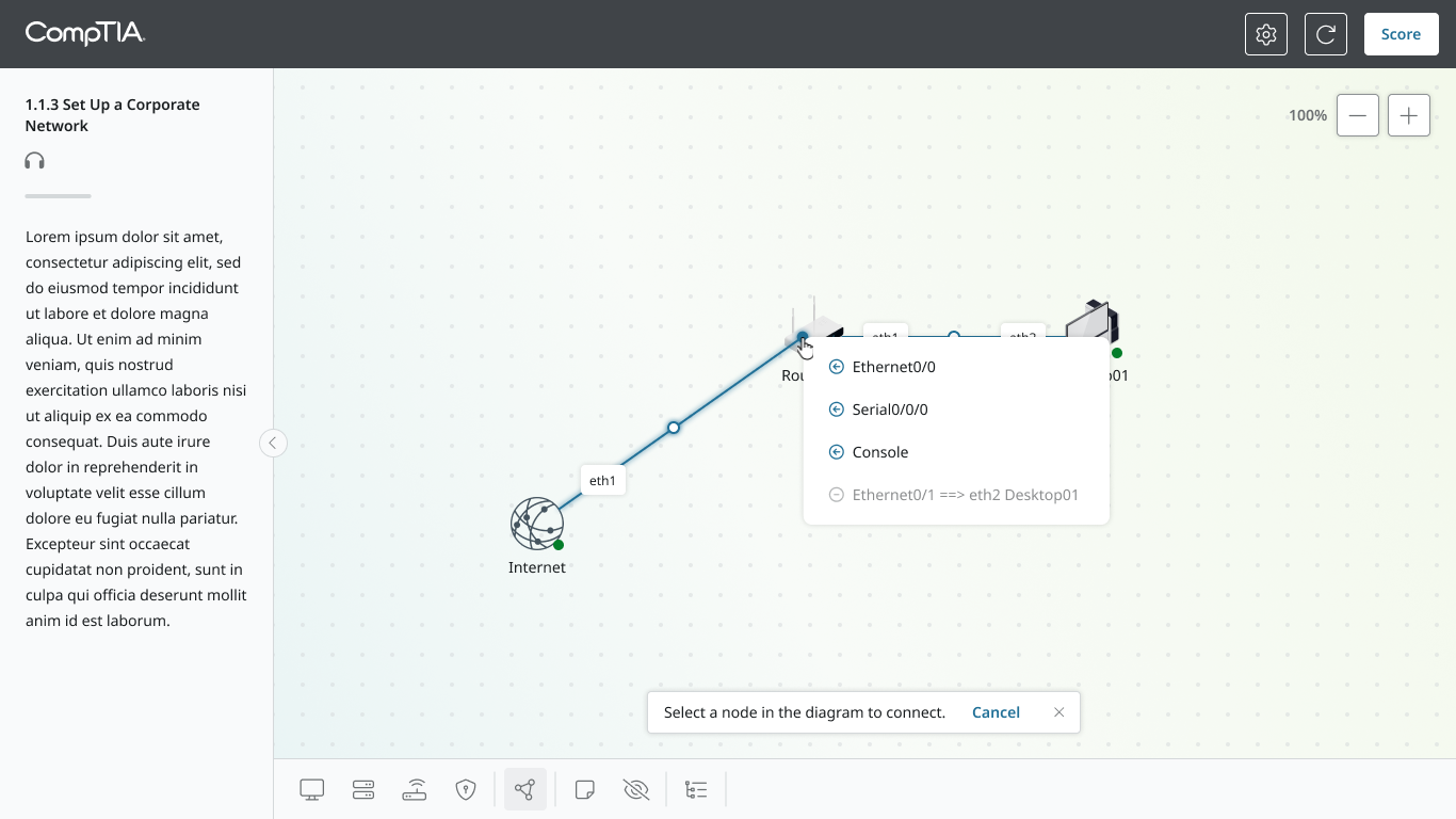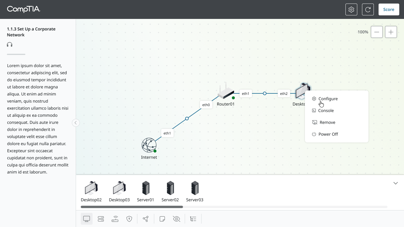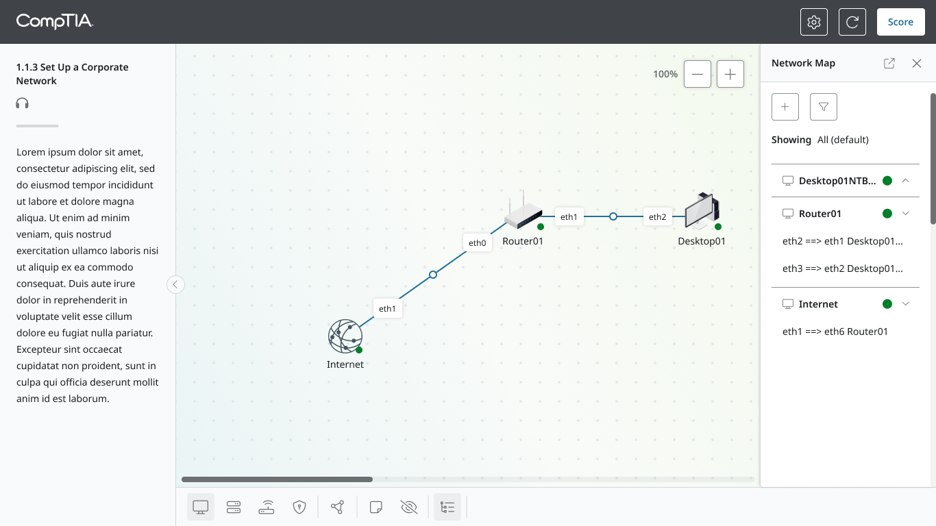 CompTIA is an IT certifications and training organization. The network modeler represents the next step in CompTIA’s flagship performance-based products. It uses drag n’ drop functionality and an array of supporting features to construct, connect, and configure networks, as well as dive into individual devices for further configuration.